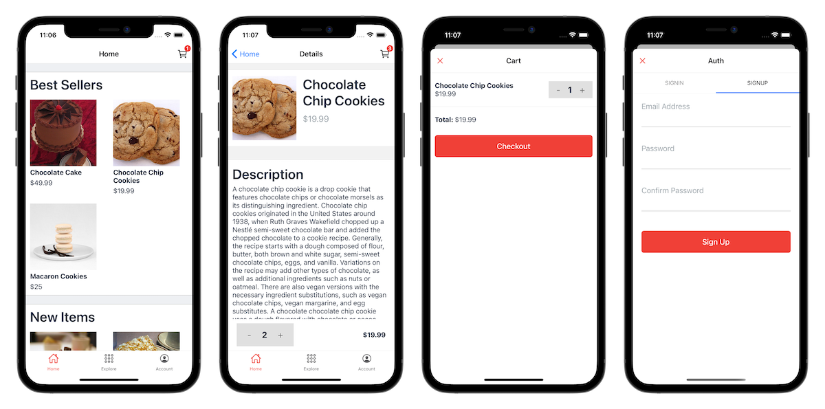 In the React Native app you'll create a UI to allow a user to sign and and register as well as how to easily pass the user's JSON web token along with each API request.